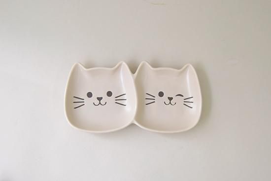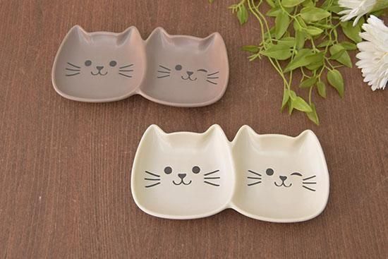 ラテにゃんこ 二連皿 ホワイト J1952-010WH